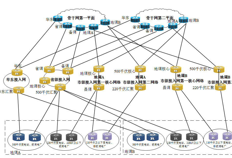 公司的電力調(diào)度數(shù)據(jù)集成方案采用省、市、縣三級結(jié)構(gòu)和雙平面部署,并分為調(diào)度主站和變電站子站建設。其中,路由交換設備負責匯聚、分發(fā)和管理數(shù)據(jù);防火墻、縱向加密、橫向隔離等設備保障網(wǎng)絡邊界安全;網(wǎng)絡安全監(jiān)測裝置、入侵檢測、防惡意代碼等設備保障內(nèi)部數(shù)據(jù)安全。